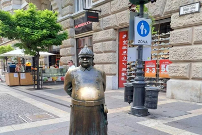 Strategically located in the heart of the city's 5th district, on the corner of Zrínyi Street and Október 6 Street, a bustling pedestrian area very close to the St. Stephen's Basilica, in Budapest, Hungary, The Fat Policeman, depicting a portly Police official, clad in an early 20th century traditional Hungarian uniform, complete with a peaked cap and upturned moustache and representing a nostalgic, warm-hearted image of a bygone era, was created by the Hungarian sculptor András Illyés and was unveiled in 2008. Although some maintain that the statue is based on the conception of a character from old Hungarian cartoons named Mihaszna András or Useless Andrew, the artist is said to have modelled it after his grandfather with his impressive round belly, indicating his love for hearty Hungarian cuisine.
